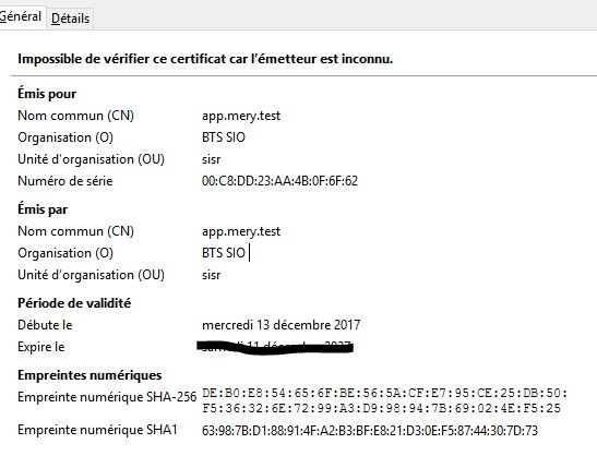 Il faut évidement un certificat valide pour le nom de domaine concerné, j’ai rapidement créé un certificat auto-signé.