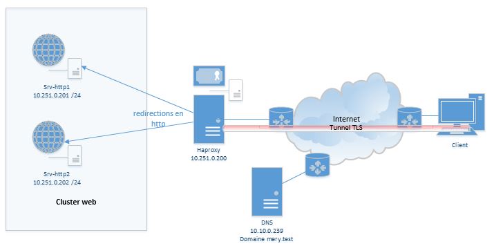 Il faut créer un tunnel entre le Client et le répartiteur de charge (haproxy), les serveurs web n’ont donc pas à être configurés avec TLS.