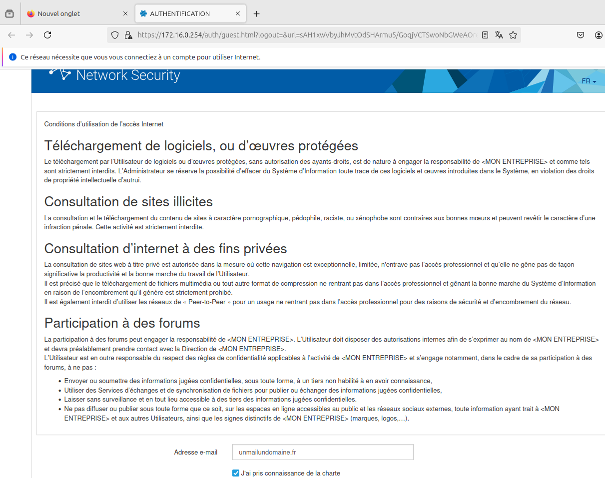- Un client doit alors pouvoir se connecté et être invité à s'authentifié via le portail captif: