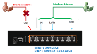 Lors de cette configuration, le paramétrage pourra être, bien sûr, modifiée et, par exemple, une autre interface pourra être dédiée à l'administration, nottament via l'usage d'un vlan de management