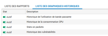 L'onglet Liste des graphiques historiques permet de visualiser et modifier les graphiques activés par défaut.