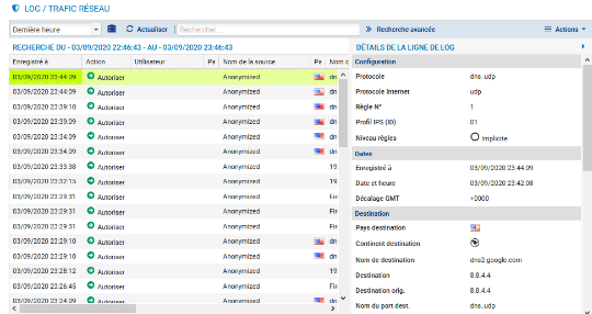 - Cliquer Monitoring puis LOGS - JOURNAUX D'AUDIT puis, par exemple, Trafic réseau.