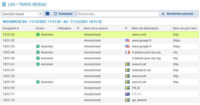 - Cliquer sur l'onglet Monitoring puis LOGS - Journaux d'audit / Vues / Trafic réseau : vous devriez voir apparaître les traces :