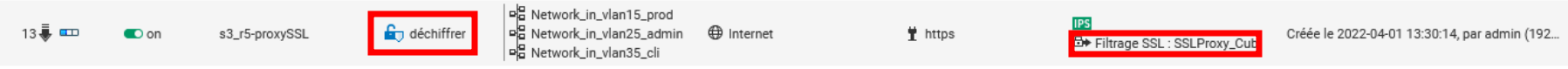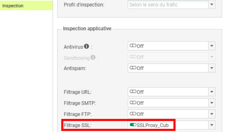 Dans la liste déroulante des politiques de sécurité, choisir par exemple (0) SSLFilter_00.