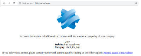 - Ouvrir la page web http.badssl.com depuis votre navigateur, elle ne doit pas s'afficher correctement. Vous devez voir le message de blocage ci-contre :