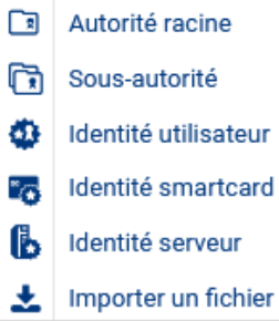- Importer un fichier : le fichier importé peut être une identité, un certificat, une CRL.