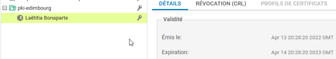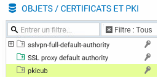 Il est également visible via le menu OBJETS / CERTIFICATS et PKI