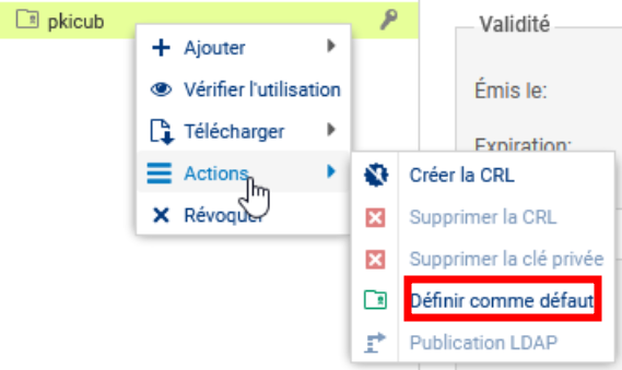 Définir éventuellement par défaut l'autorité de certification