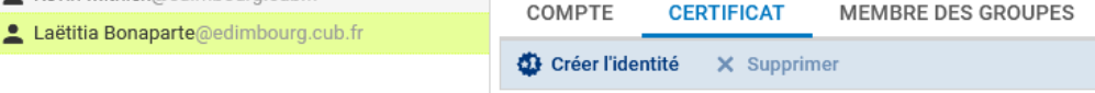 - Sélectionner l'utilisateur puis cliquer sur CERTIFICAT puis Créer l'identité